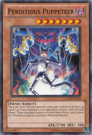 Uma vez por turno, você pode descartar 1 carta para ganhar o controle de todos os monstros de nível 3 ou menos virados para cima que o seu oponente controla, até a fase final. Esses monstros não podem ativar os seus efeitos e não podem ser tributados ou usados como materiais para invocação synchro.