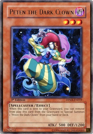 Quando esta carta é enviada para o cemitério, você pode remover do jogo esta carta do cemitério para invocar especialmente 1 "Peten the Dark Clown" da sua mão ou baralho.
